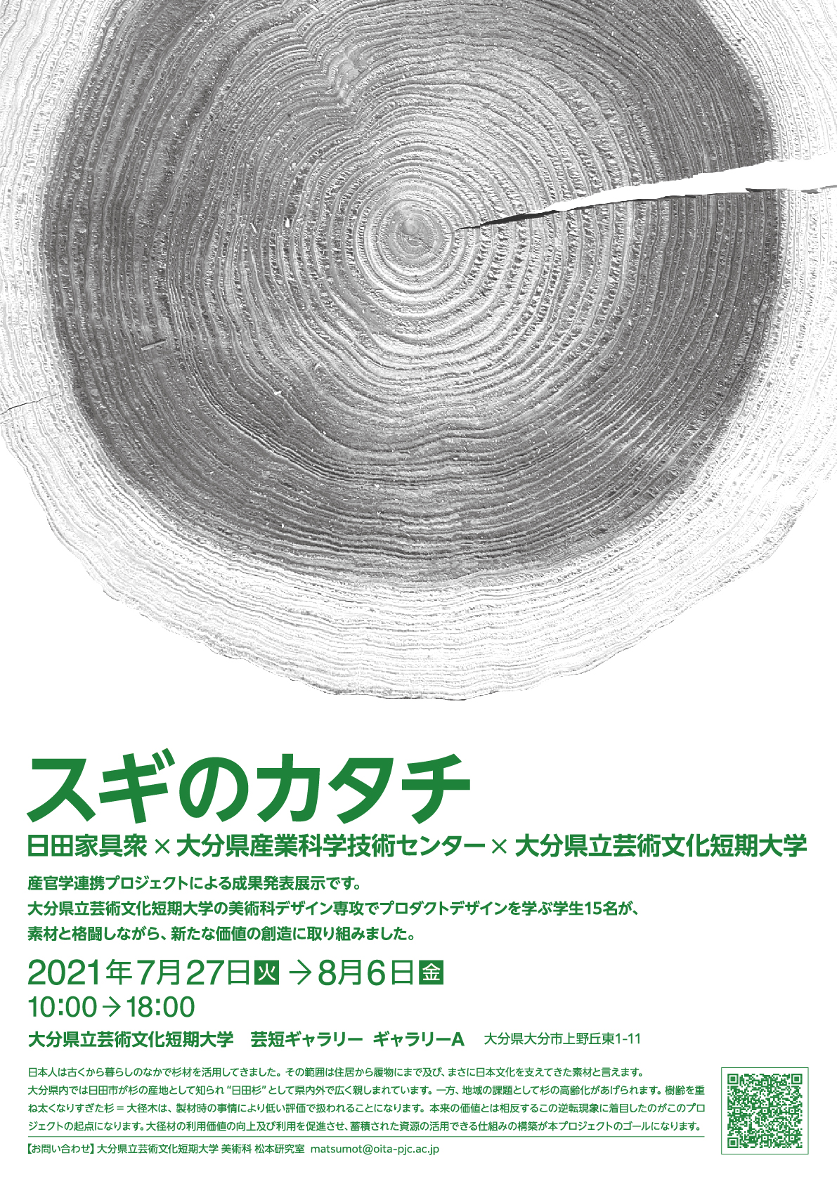 芸短ギャラリーにて、7月27日(火)~8月6日(金)、産業官連携による成果発表「スギのカタチ」展を開催します。