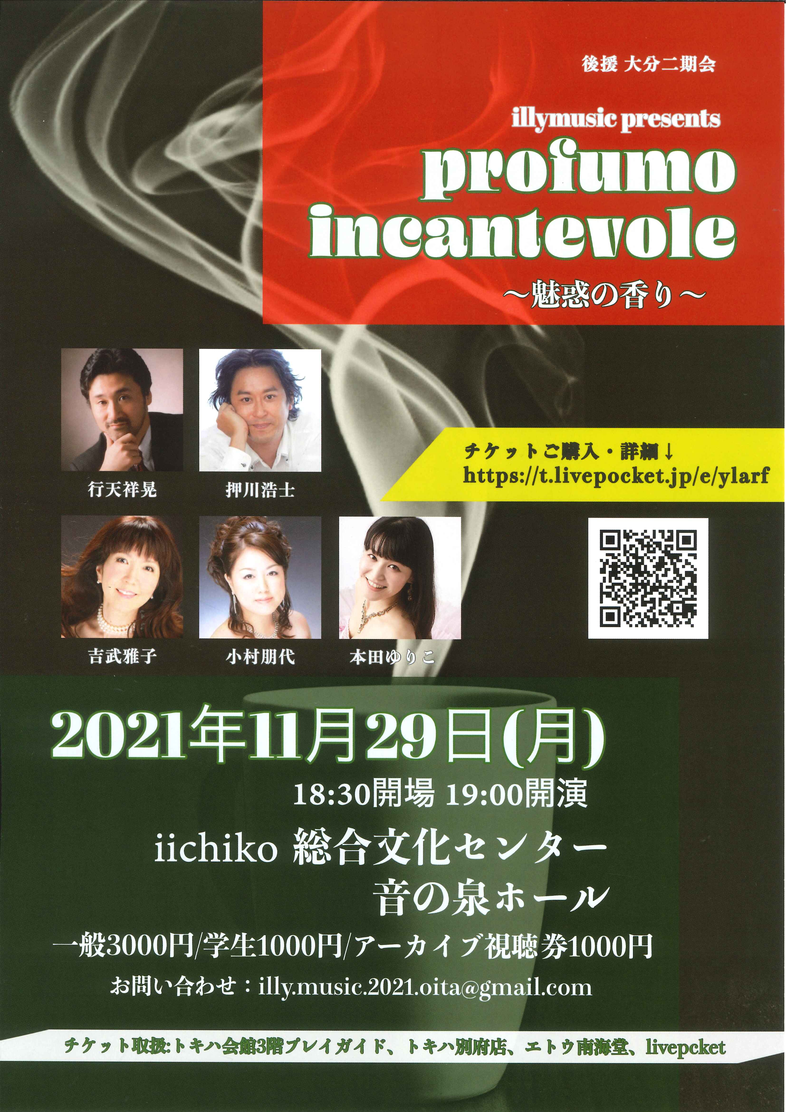 iichiko総合文化センター iichiko音の泉ホールにて『illymusic presents「profumo incantevole~魅惑の香り~」』が開催されます。