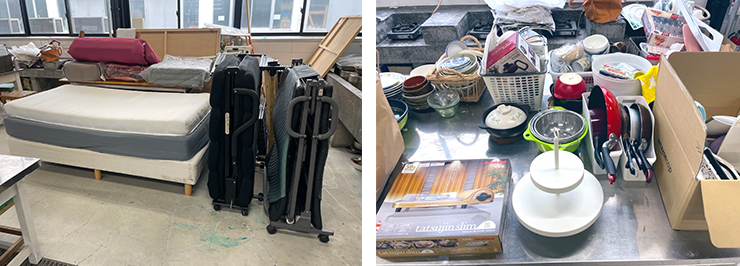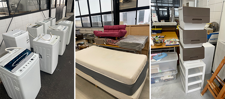 洗濯機・冷蔵庫・ベッド・棚・ソファー・炊飯器・ケトル・電子レンジ・空気清浄機・テーブル・学習机・掃除機・テレビ・食器・雑貨・本 など