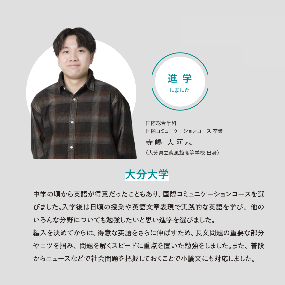 教養ゼミナールや卒業研究ゼミでは、4年制大学への編入学を希望する学生に対して、個別に編入学試験対策をサポートしています。