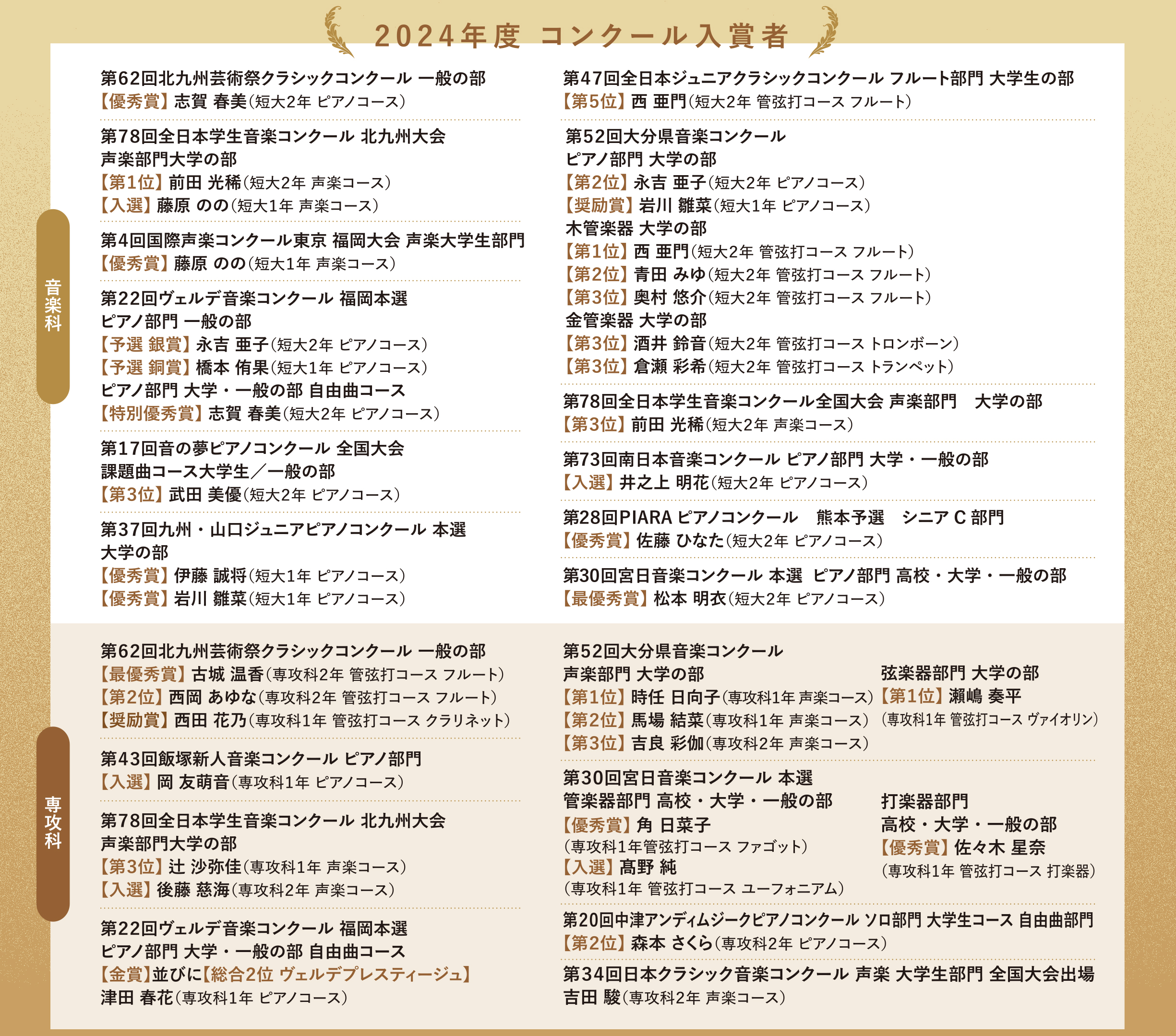 平成21年度、大分県文化スポーツ振興財団と本学との協定により「iichikoグランシアタジュニアオーケストラ」が設立されました。このジュニアオーケストラの講師として、日本を代表する演奏家の方々をはじめ、東京藝術大学の先生など、著名な方々が来県します。その機会に、本学の学生も“公開”という形でレッスンを受講しています。