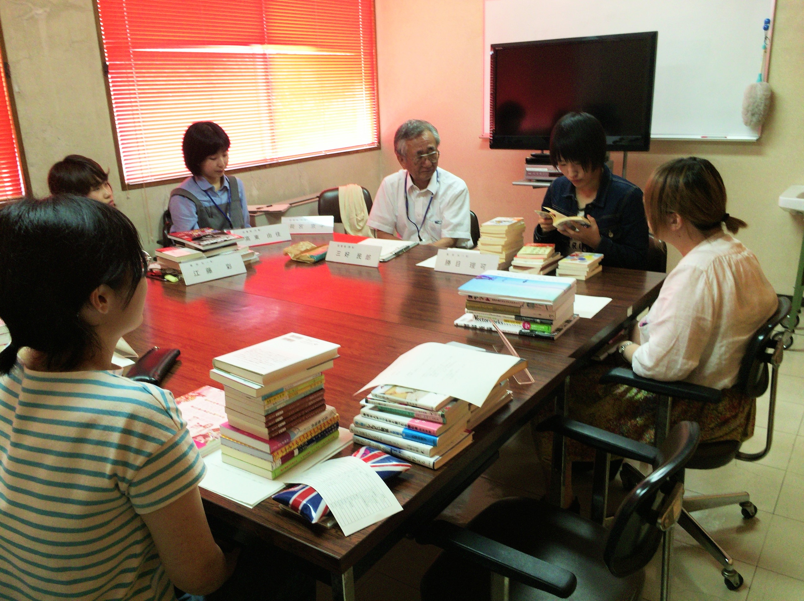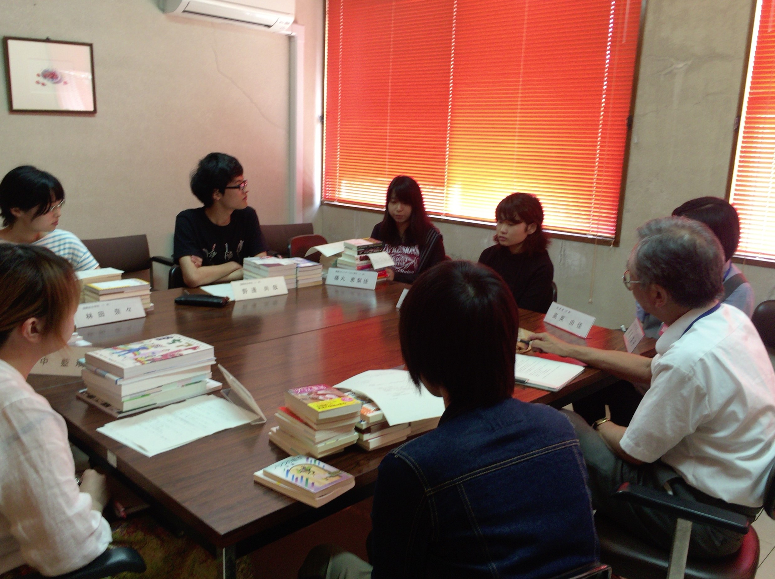 6月22日(水)16:20からグループ学習室にて、選書ツアー参加者6名、図書館職員3名の計9名で意見交換会を行いました。選書ツアーの感想や選んだ本のおすすめのポイントを紹介し合いました。参加者それぞれの、自分の選んだ本の良さを知ってほしい!という熱い思いの伝わる意見交換でした。