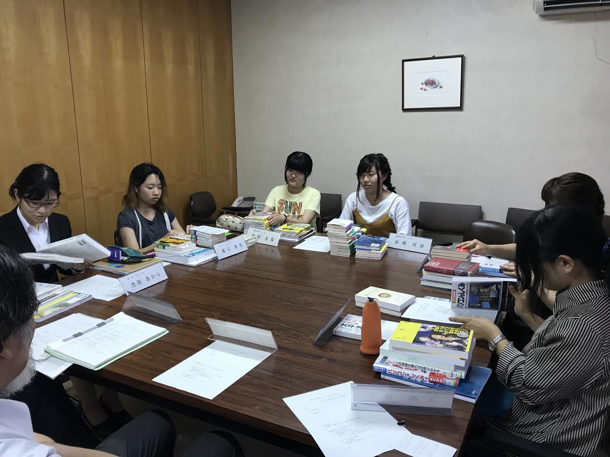 7月5日(水)16:20からグループ学習室にて、選書ツアー参加者6名、図書館職員3名の計9名で意見交換会を行いました。選書ツアーの感想や選んだ本のおすすめのポイントを紹介し合いました。参加者それぞれの、自分の選んだ本の良さを知ってほしい!という熱い思いの伝わる意見交換でした。