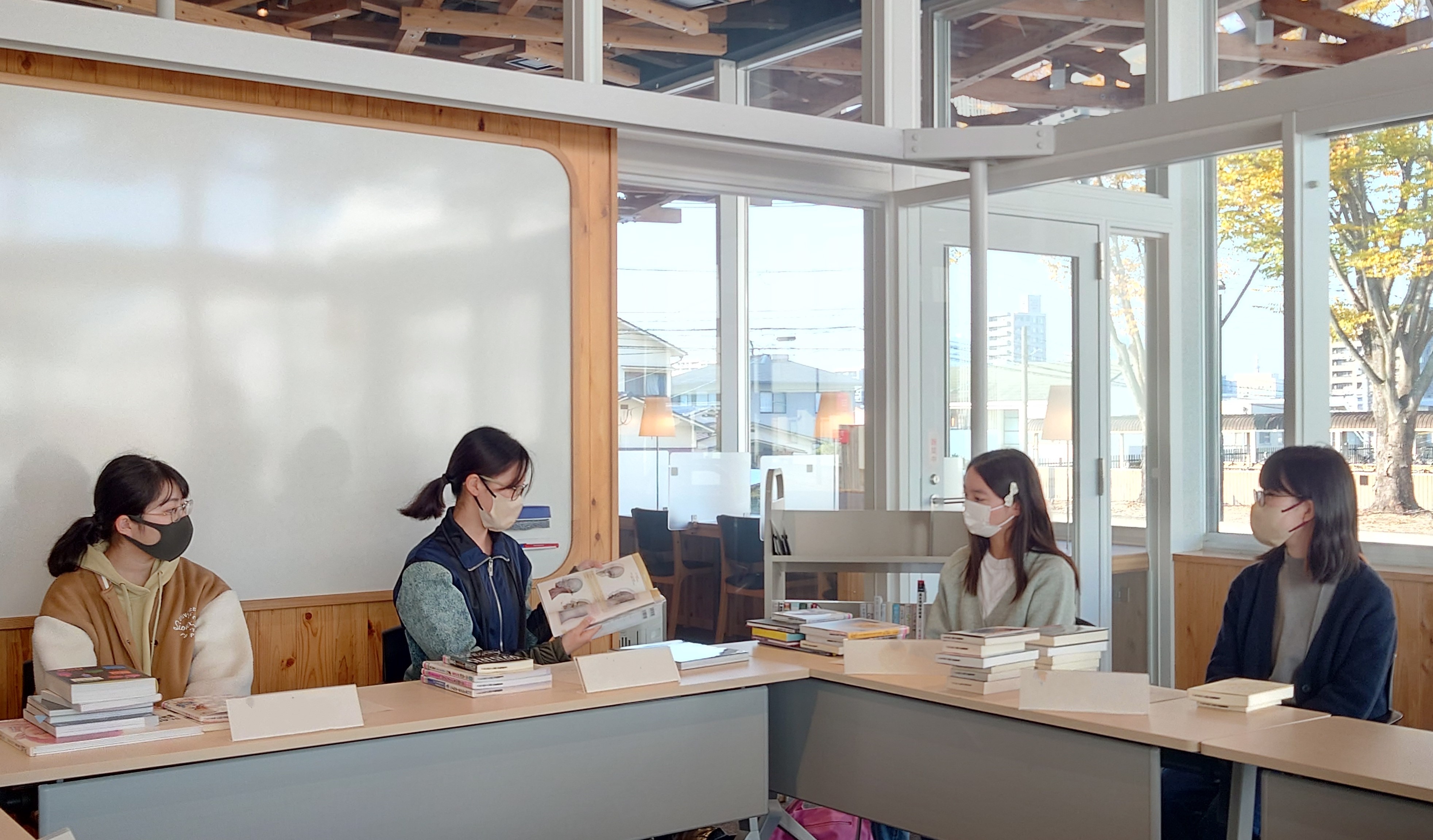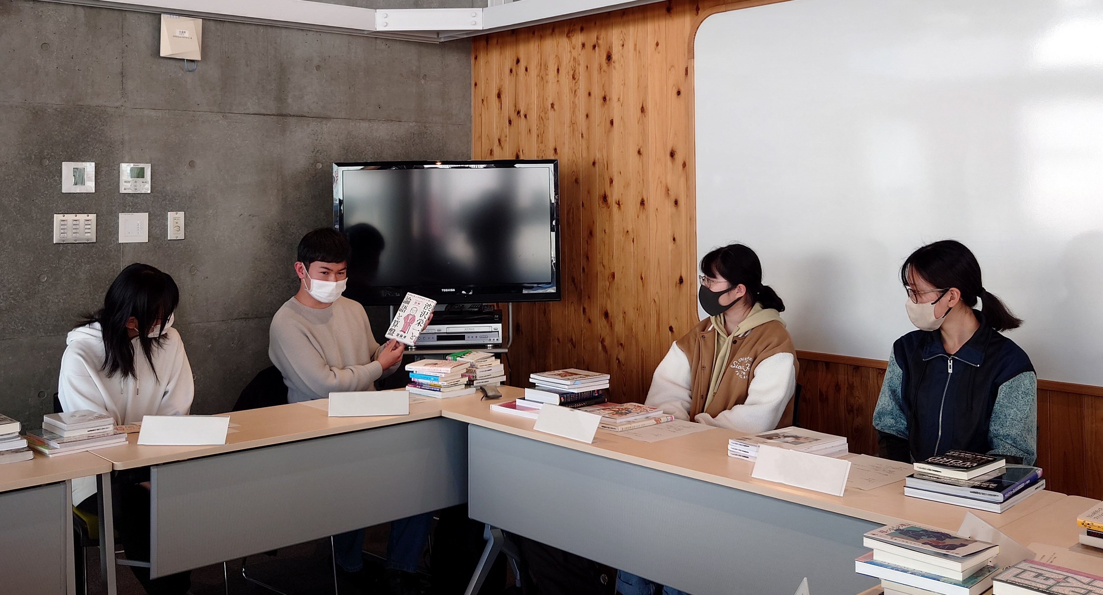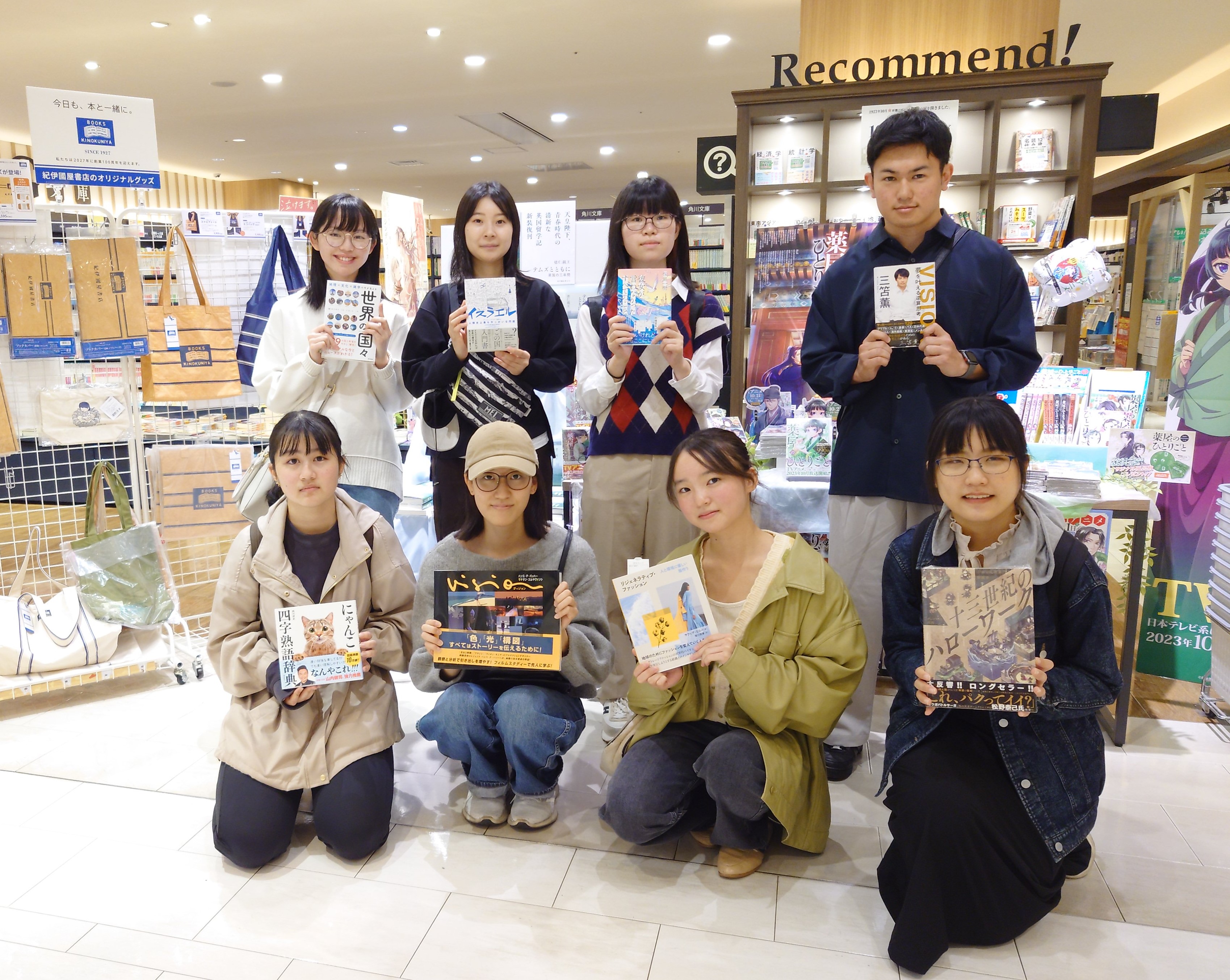 1時間経過したところで一旦集合し、写真撮影を行いました。事前にスマホで本の画像やリストを用意していた学生も多かった