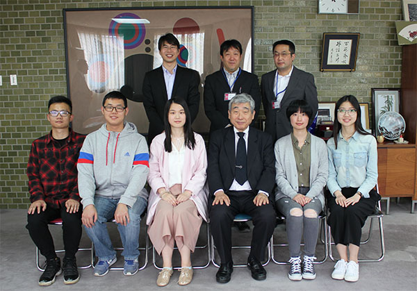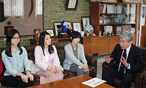 4月20日(木)、中山学長、国際総合学科から疇谷(くろたに)学科長、大木教授、許専任講師と留学生とが歓談しました。