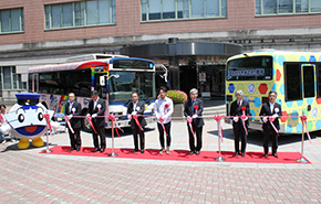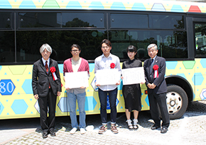 5月19日(金)、本学で「大分バス株式会社創立80周年記念ラッピングバスデザインコンテスト」の表彰式及び出発式が行われました。