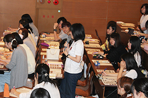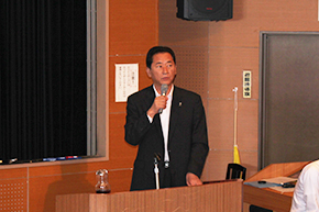 講座ではまず吉岡議員が国政と地方自治や、議会の役割と仕組みについて解説しました。本学のキャンパス整備も県の予算による事業であることなど、学生たちにとって身近な例を挙げながら説明していただきました。