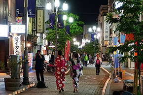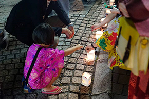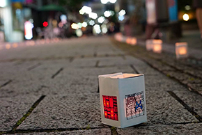 約千個のキャンドルが五番街の通りに並べられ、府内五番街の石畳にやさしい灯りをともしました。