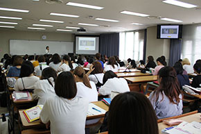 参加した学生たちはスライドでリニューアルした釜山外国語大学の写真や、楽しそうな留学生活の様子を見て、編入学と語学実習への期待が膨らんだようでした。