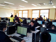 講義開始後も、これまでのファブラボ大分での活動やTV・CM出演などの経験を生かして、生徒のみなさんにわかりやすい説明と身近な話題を交えた作り方のアドバイスをしていました。パソコンのOSの違いから教室に設置されたPCでは、iDecoraが動作しないというトラブル発生時にも、素早い対応をしてくれました。今回の会場となった三重総合高校の生徒さんは、50分×2コマの授業中、私語もせずに真剣に講義を聴いてメモなどを取っていました。