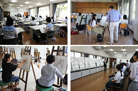 3つのコース(・美術コース・デザインコース・デッサン入門コース)に分かれ、デッサン実技と美術科教員による講評を行いました。