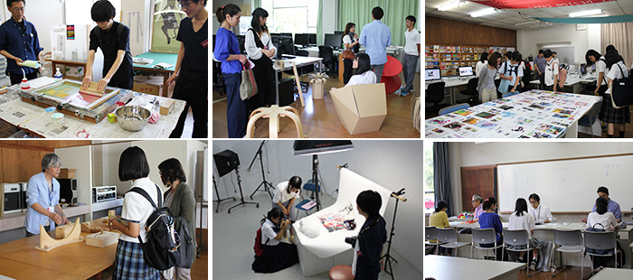学生の作品や制作の様子を見ていただき、シルクスクリーンやマクロ撮影の体験ワークショップも開催しました。