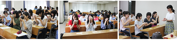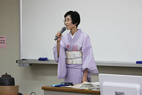 久々宮先生は最後に「茶道に限らず、華道や書道など『道』のつくものを経験してみてください。細く長く、歳をとっても楽しめます。さらに道具にこだわるともっと楽しくなります。」と学生たちに呼びかけました。