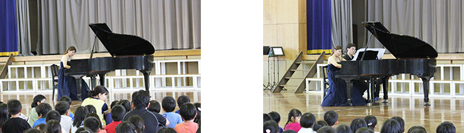 連弾による「さんぽ」は、2人でひとつのピアノをリズムを違わず弾く技術の高さに、大人も子どももつい感心して見入ってしまいました。