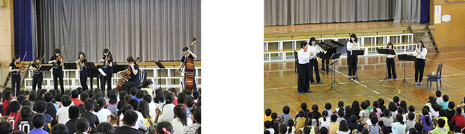 地域巡回演奏会は県民の方々や小・中学生にクラシック音楽の素晴らしさを伝え、大学と県民の交流を深めるとともに、地域文化の向上への貢献を目的として昭和61年から始まりました。