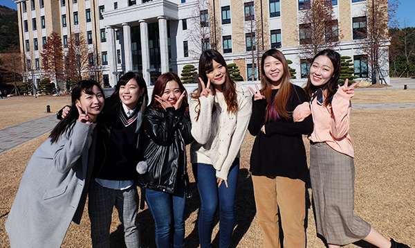 現在、釜山外国語大学では、編入学2、3期生の3名と1年間短期留学中の3名の合計6名の卒業生が、とても充実した留学生活を送っています。