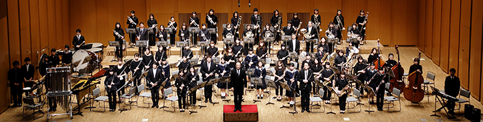 プログラム5番は吹奏楽による「吹奏楽のための第2組曲ヘ長調/G.ホルスト」、「シアター・ミュージック/P.スパーク」、「イェルサレム賛歌/A.リード」を森口真司教授の指揮により披露しました。芸術緑丘高校音楽科の皆さんも一緒にこの日のために練習を重ね、音楽の壮大さにのまれることなく、素晴らしい演奏を披露してくれました。