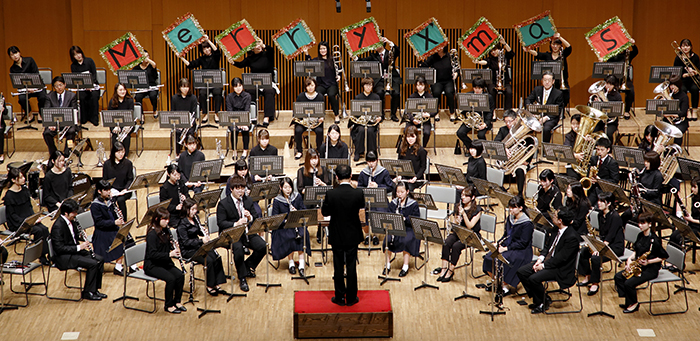 アンコールでは「メリーゴーランド/P.スパーク作曲」、「クリスマスフェスティヴァル/L.アンダーソン作曲」を披露。この時期よく耳にするクリスマスソングの数々を吹奏楽で楽しませてくれました。
