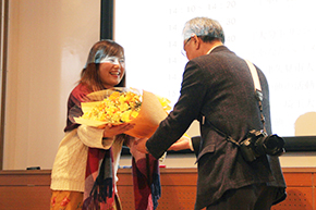 最後に会場に訪れた卒業生や、かつての実習助手のみなさんからたくさんの花束が贈呈され、吉良教授への感謝を伝えました。長年に渡り本学を支えてくださった吉良教授が退職されますが、今後もますますご活躍されることと思います。