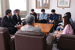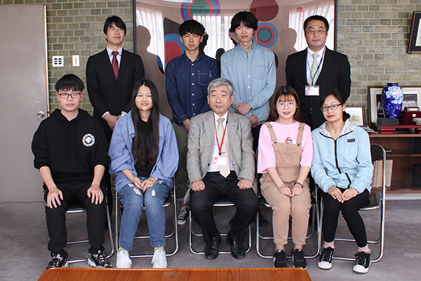 5月1日(火)の午後から、留学生6名と中山学長、国際総合学科教員が学長室において歓談しました。