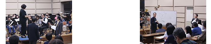この指揮法講座は、吹奏楽コンクールの課題曲を題材に、実際に中学・高校吹奏楽の指導者が公開リハーサルを行い、音楽科の講師陣と共に現場で生じる様々な問題を考察する講座です。