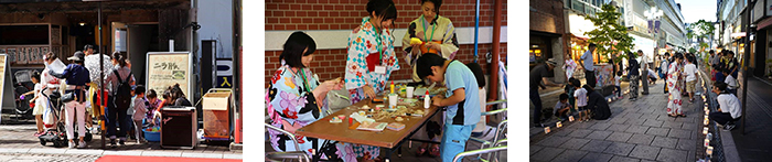 日が暮れ始めると、毎年恒例のキャンドルナイトのはじまりです。キャンドルは学生達が植物油で手作りし、牛乳パックで作った1,000個のキャンドルホルダーのうち、400個は幼稚園や保育園の皆さんにかわいらしい絵を描いてもらいました。イベント終盤には線香花火による世界一小さな花火大会も行われ、今年もたくさんの方々にご参加いただき、盛況のうちに終了することができました。