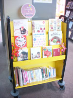 お菓子作りのレシピや彼に食べてもらいたい料理本を集めています。恋愛小説も同時展示中です。きゅんとくる1冊から泣ける1冊まで用意してお待ちしています。