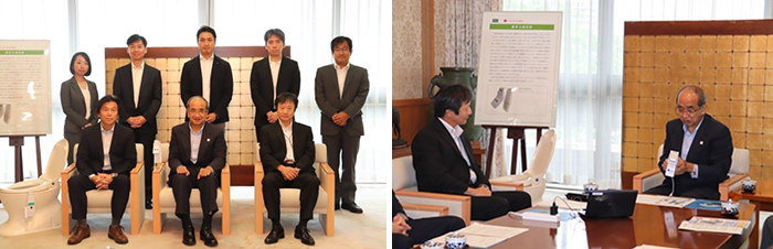 本学美術科デザイン専攻の松本康史准教授が、デザイン面での開発支援を行った「脊髄損傷者向け排泄支援装置(リハビリ機器)」の販売開始について、9月6日(木)、広瀬勝貞大分県知事に報告しました。
