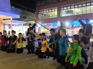 12月31日の大晦日は大分駅南口で、APUベトナムからの留学生によるバンブーダンス。狩野泰一氏(東京都生まれ佐渡島在住篠笛奏者。「鼓動」のメンバーとして各地で活躍、1997年に独立、臼杵(野津)出身で急逝した塩屋監督の「種をまく旅人」などの音楽監督を務めた)の篠笛演奏。本学ダンスサークルのダンスなどを披露しました。