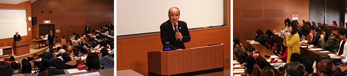 10月30日(火)、1限の「地域社会特講Ⅱ」(共通科目・情報コミュニケーション学科必修)で、広瀬勝貞大分県知事に講義を行っていただきました。