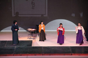23歳という若さでこの世を去った大分県が生んだ天才作曲家 瀧廉太郎の生涯を、本学 美術科・音楽科・国際総合学科・情報コミュニケーション学科の全4学科と専攻科+卒業生が舞台化。生演奏を交えながら、ときにユーモアを交えながら披露しました。