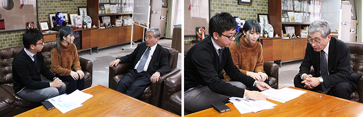 12月20日(木)、「平成30年度デザインパテントコンテスト」において優秀賞を受賞した本学美術科デザイン専攻2年の岡部桃子さんと、指導を行った情報コミュニケーション学科の野田佳邦専任講師が、中山学長に受賞の報告を行いました。