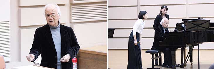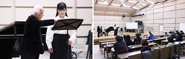 1月19日、20日の2日間、本学音楽棟小ホールにおいて「小林道夫客員教授 声楽公開レッスン」を開催し、受講した専攻科生の個性に合わせ丁寧な指導が行われました。