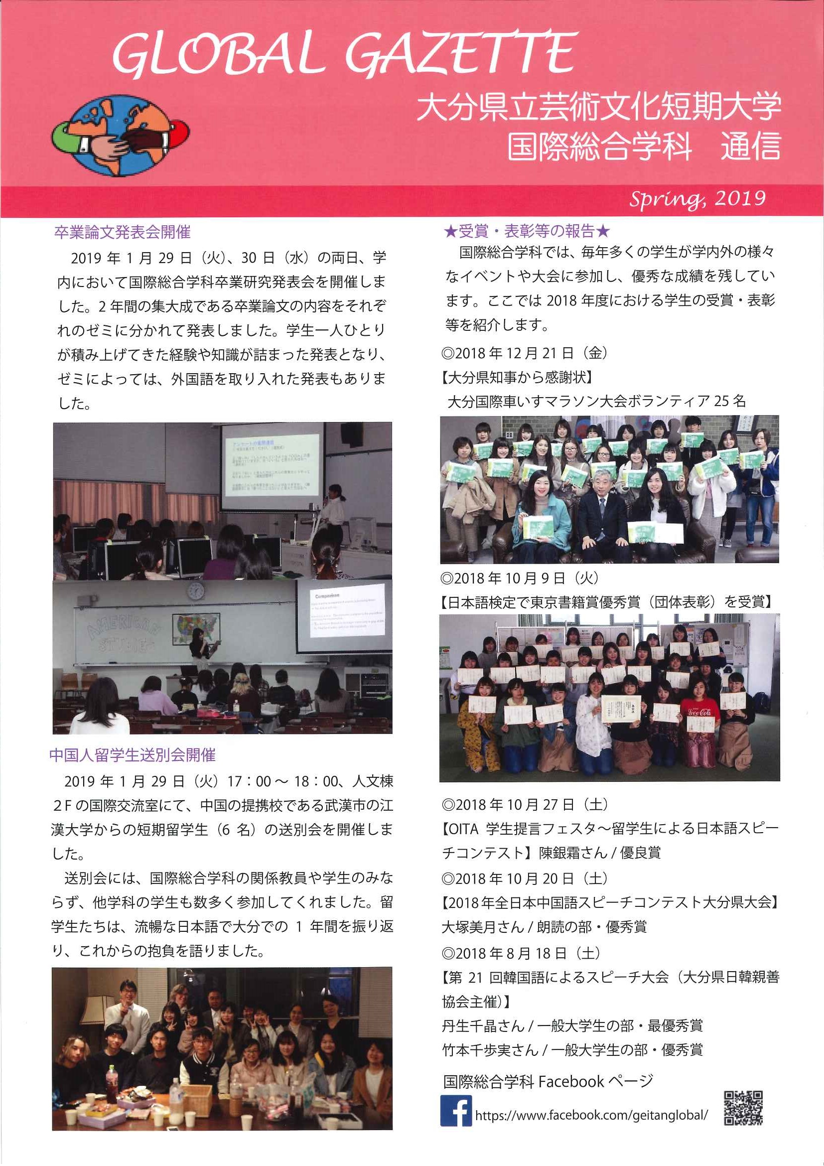 国際総合学科の活動報告やホットなニュース、イベント情報などを掲載している「GLOBAL GAZETT~国際総合学科通信~」の春号が完成しました!