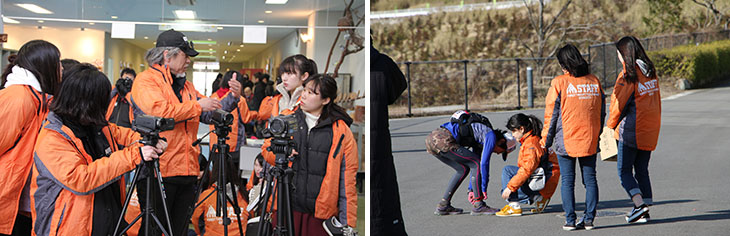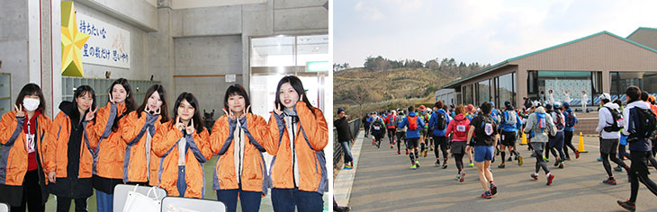 情報コミュニケーション学科の学生13名が運営ボランティアとして参加し、1泊2日で大会資料の封入作業、受付、計測チップ回収、抽選会、大会撮影などの各種業務に携わりました。大分市の森林環境を活用した観光について考え、理解を深める貴重な機会となりました。