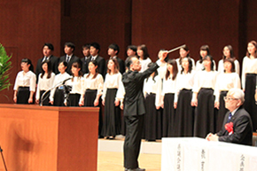 また、本学設置者である県の二日市具正副大分県知事から「芸術を学び地域社会に従事し、さまざまな分野に貢献できる人材になれることを期待しています。夢に向かって果敢に挑戦してください。」と激励の言葉をいただき、一層引き締まった新入生の表情は頼もしくありました。