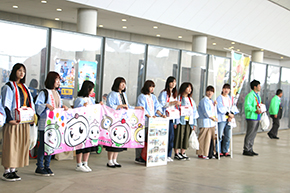 サービスラーニングの一環として5月8日(水)、昭和電工ドームで大分県社会福祉協議会が主催する「ふくしまっこ応援プロジェクト9」の募金活動に、計25名の学生が参加しました。