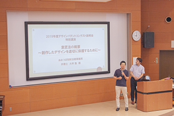 おおつぼ知財法務事務所 代表弁理士 大坪勤 氏を講師としてお招きし、「意匠法の概要」について、世界的企業が起こした訴訟で争点となった意匠権の重要性や、世界と比較した日本の意匠権登録数の実態などを例に挙げ、デザイン、意匠の目的、取得手続過程などについてご講演いただきました。