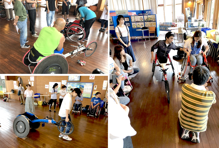 ⽥ノ浦の国道沿いで年中練習している県内の選⼿の⽅々と⼤分国際⾞いすマラソン通訳ボランティアCando( キャンドゥ)のメンバーの皆さまに、⾞いす(デイリーチェアとレーサー)の運び⽅や障害を持つアス リートのサポートの仕⽅などについて、ご指導をいただきました。