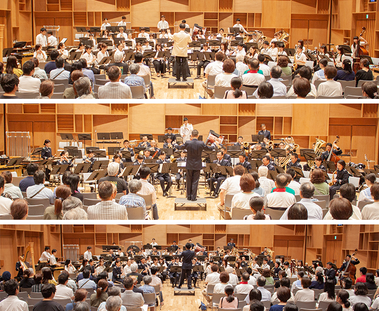 この演奏会は、航空自衛隊西部航空音楽隊からの要請を受け、初めての試みとして実施したものです。