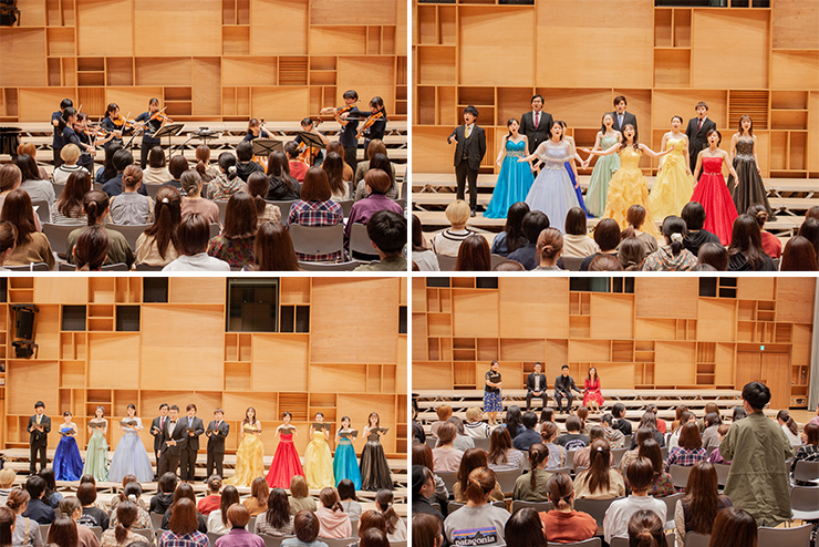 続いて、専攻科音楽専攻の学生達が、セントポール 組曲JIGフィドルファドルの演奏や大分にゆかりのある滝廉太郎作曲の「花」などで歓迎、その後 諶宗燦さんとイタリアの大衆歌謡「フニクリ・フニクラ」を合唱しました。