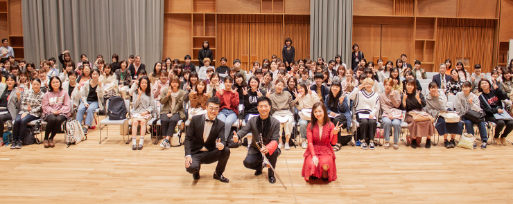 10月18日(金)、「おおいた夢色音楽祭2019」に出演する中国武漢市"武漢歌舞劇院"のミュージシャンが来学し、音楽科の学生や国際総合学科の学生らと交流を深めました。本学は武漢市の江漢大学と交流協定を終結しており、現在同大学からの留学生5名が国際総合学科に在籍しています。