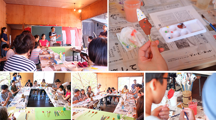 ワークショップに使用する素焼きの一文人形の製作を宮脇氏に依頼し、当日は柞原八幡宮の禰宜長澤氏に祭と人形の歴史についてお話いただいた後、一文人形の絵付けを行いました。