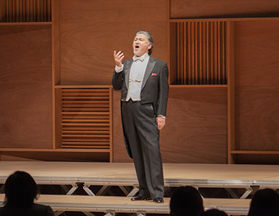 行天准教授と共に、師事する在学生、卒業生が出演し、ピアノ演奏と共にイタリアオペラ22曲の美しい歌声と情感あふれるシーンで観客を魅了し、来場者からは「ブラボー」の掛け声と拍手が贈られました。