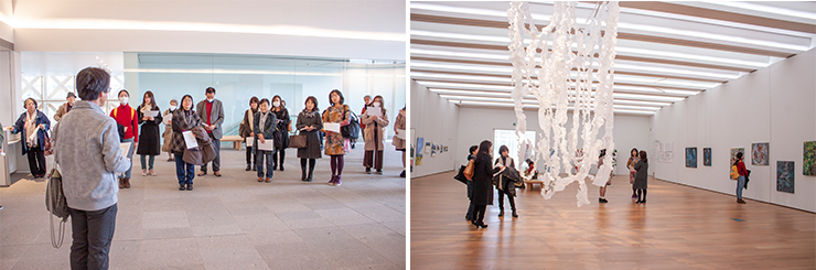 最終日は、美術科、専攻科造形専攻の卒業・修了制作展(大分県立美術館にて開催)の鑑賞会を実施。様々な視点で表現された作品に、より深い美術への関心を高めていました。