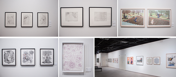 シルクスクリーン、リトグラフ、デジタルプリントなど様々な印刷技法で表現された作品34点を展示。教員、学生の個性あふれる作品を前に、来場者はその技法を興味深く鑑賞しました。