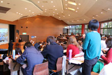 また、アントレプレナー事業(職員の提案ではじめた事業)として、自転車のにあうまちおおいた、森林セラピー事業、トイレアートのトイレンナーレ事業が行われ、本学も自転車の事業や森林セラピーにサービスラーニングで参加しました。意見交換会では、大分市の防災・減災事業について、別府市との連携、駅裏の南北軸の人の流れ、バリアフリー化などについての質問があり活発な討論が行われました。