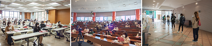 今年度は全国の新型コロナウィルス感染症拡大等の状況を踏まえ、会場や開始時間を分散するとともに、入学生にマスク着用、手指消毒、換気など予防対策を講じた上での実施となりました。