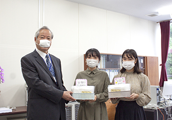 5月18日(月)には、小手川学長へ活動を報告し、学内各所にマスクを配りました。