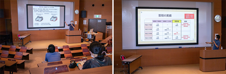 続いて、情報コミュニケーション学科の野田准教授からコンテストについての説明に加え、今年度から始動した「知財サポーター」の紹介も行われました。